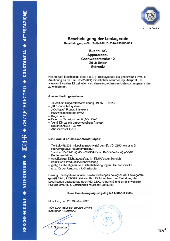 Los reactores a presión, reactores de vidrio y equipos de proceso Buchi cumplen los requisitos normativos y operativos más exigentes. Nuestras soluciones cumplen todas las normativas y directrices tecnológicas obligatorias. Nuestra amplia y moderna documentación proporciona la base para una eficaz cualificación cGMP de sus equipos. Esto le garantiza a usted, el cliente, una calidad fiable de los productos y procesos, así como la mejora continua de nuestros servicios.
