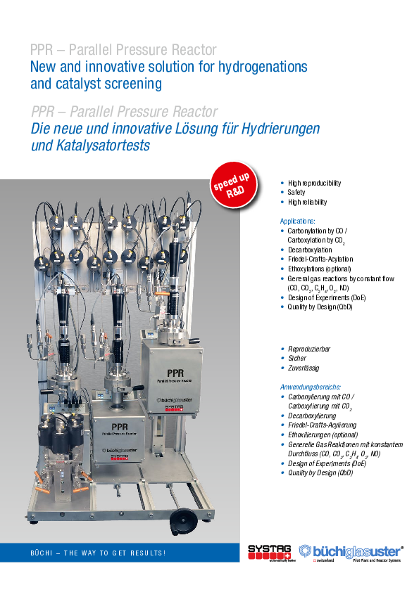 All experiments have been done in Buchi’s technologically leading PPR (Parallel Pressure Reactor) system.